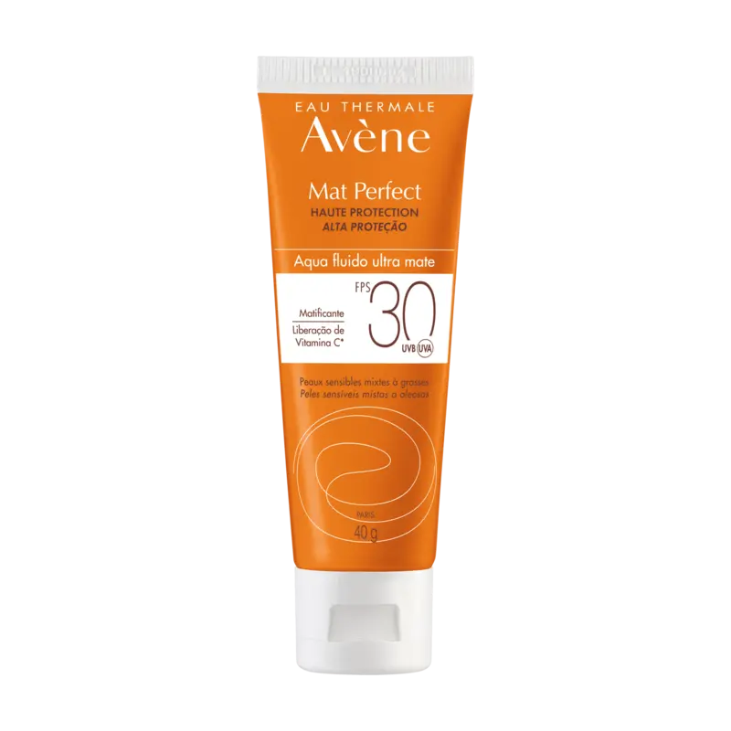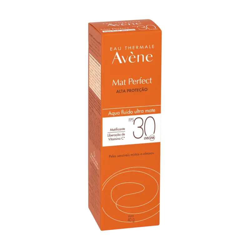 Alta proteção solar para peles sensíveis, mistas a oleosas. Este tratamento diário matifica a pele, deixando-a mais radiante e fresca. O Mat Perfect Aqua-Fluido FPS 30 aproveita os benefícios do exclusivo complexo de ingredientes ativos de proteção Sunsitive® Protection desenvolvido pelos Laboratórios Pierre Fabre. Este sistema de filtros patenteado oferece proteção UVB-UVA muito ampla e fotoestável. Para maior proteção celular contra os radicais livres, este confortável fluido contém um complexo antioxidante único, com um precursor fotoestável de vitamina E (Pré-tocoferil) e um precursor fotoestável de vitamina C (Ascorbil Glucosídeo). O ingrediente ativo monolaurina e a Água Termal Avène, conhecida por suas propriedades calmantes, anti-irritantes e suavizantes, completam esta fórmula, proporcionando uma sensação refrescante na aplicação. Sua nova textura ultraleve com toque seco, tem um acabamento não gorduroso e efeito mate.