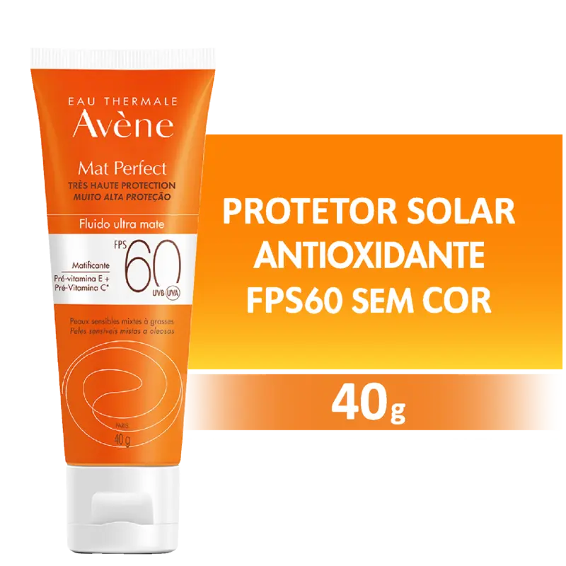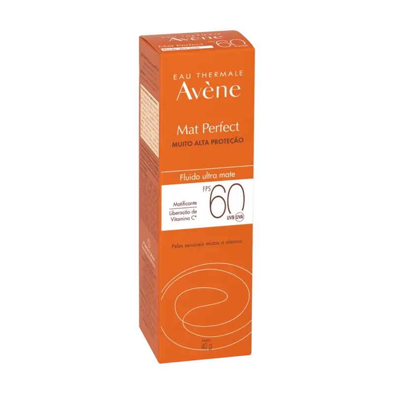 Esta proteção solar muito alta para peles mistas a oleosas e sensíveis proporciona um efeito matificante imediato e de longa duração por 12 horas. A fórmula fotoprotetora e antioxidante é muito resistente à água e deixa a pele com aspecto fresco e radiante. O Mat Perfect Fluido FPS 60 sem cor conta com os benefícios do exclusivo complexo de ingredientes ativos de proteção Sunsitive® Protection desenvolvido pelos Laboratórios Pierre Fabre, um sistema de filtros patenteado para proteção UVB-UVA de amplo espectro e fotoestável. Este complexo antioxidante único, que combina um precursor fotoestável de vitamina E (Pré-tocoferil) e um precursor fotoestável de vitamina C (Ascorbil-Glucosídeo), proporciona uma proteção celular reforçada contra os radicais livres. Sua textura leve é enriquecida com monolaurina e a Água Termal Avène, reconhecida por suas propriedades calmantes, anti-irritantes e suavizantes, para uso diário. Esse fluido matificante com um acabamento não oleoso, não brilhante é formulado de acordo com a abordagem Skin Protect Ocean Respect ecologicamente responsável. Com Tubo hermético. Sem perfume.